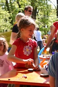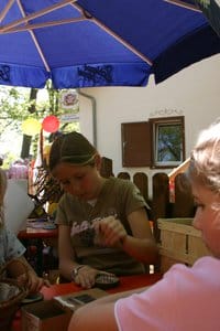 Hier konnten Holzscheiben angemalt und mit Hilfe von Nägeln eine Murmelbahn „gehämmert“ werden. Es waren Kreativität und handwerkliches Geschick gefragt.