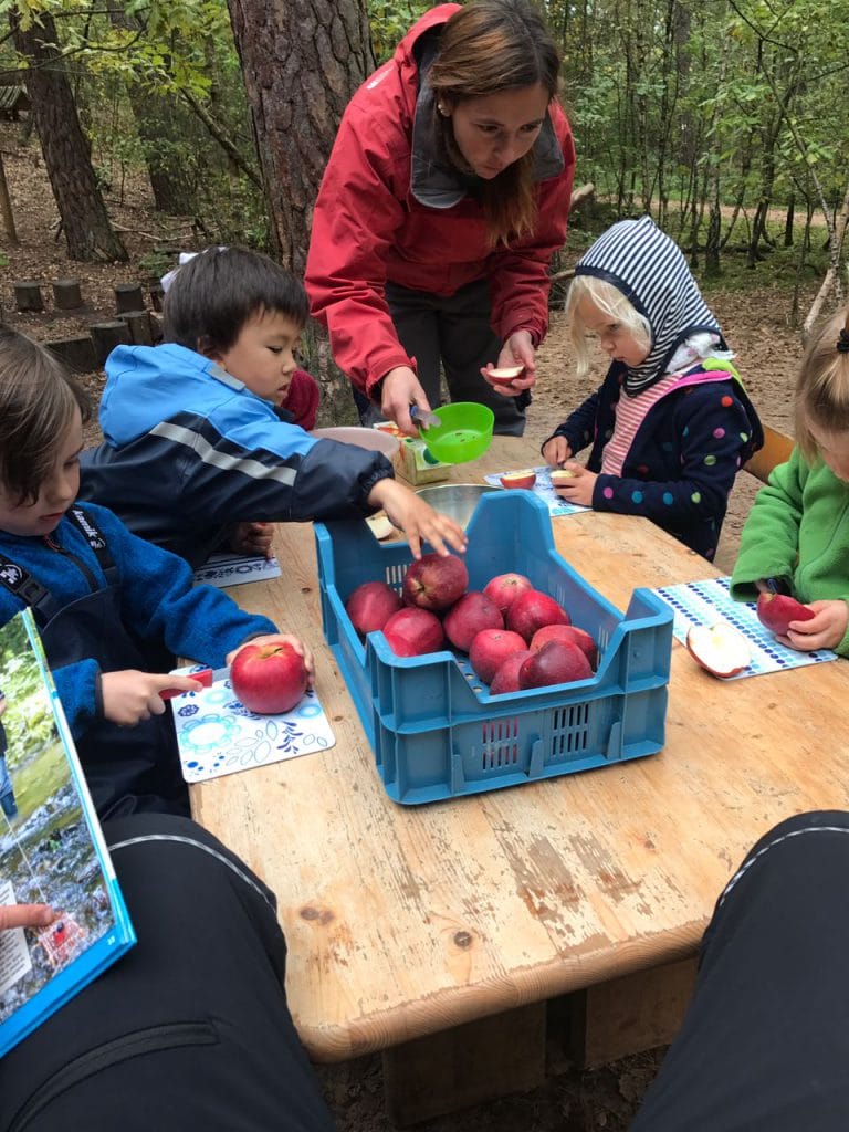 Jedes Jahr, wenn der Herbst Einzug hält und die Wälder in die schönsten Rot- , Orange- und Brauntöne färbt, freuen sich die Kinder des Alzenauer Waldkindergartens auf eine besondere Woche. In dieser sogenannten Apfelwoche dreht sich für die Waldkinder – wie der Name schon sagt – alles um den Apfel.
