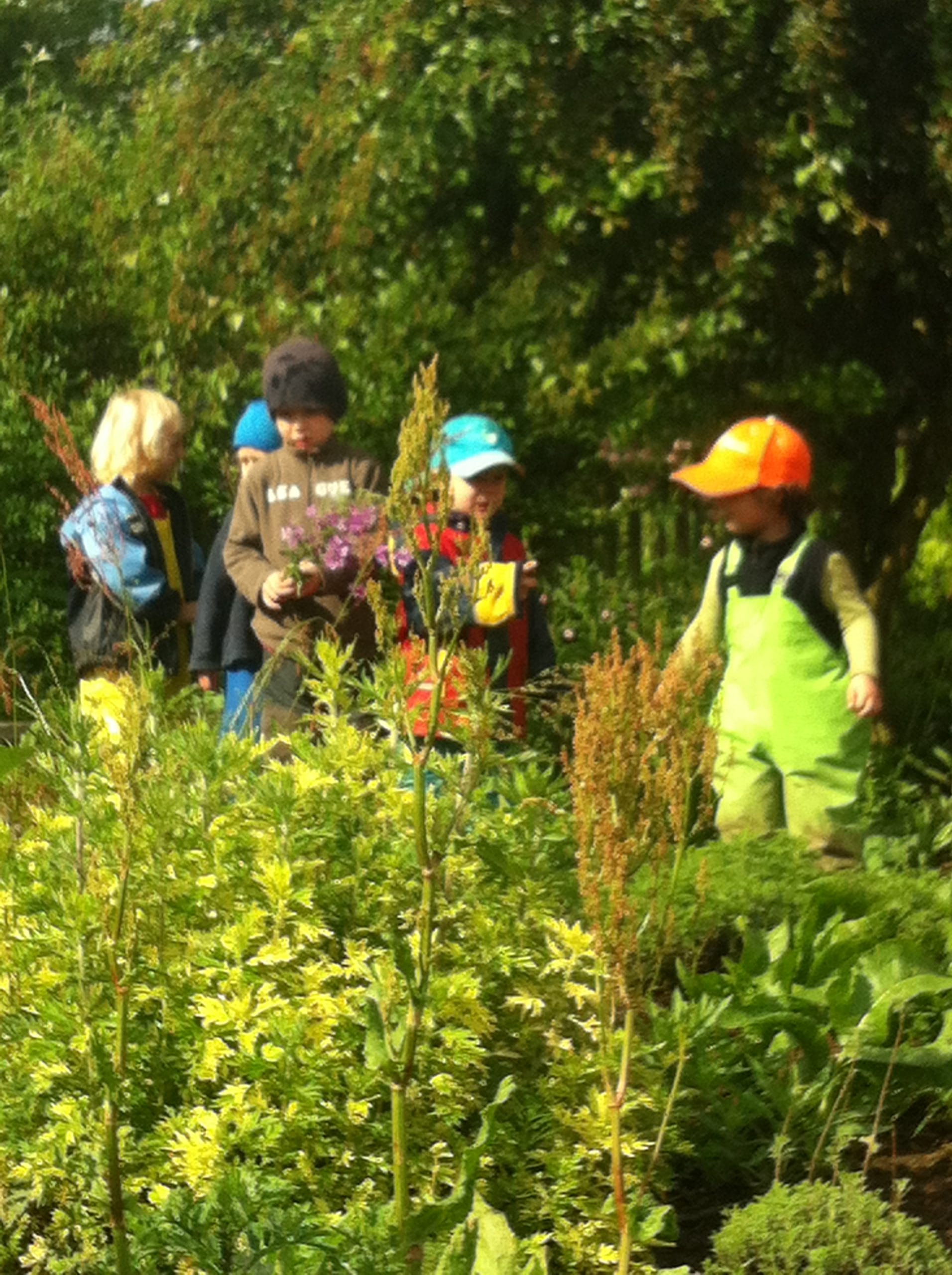 Anfang Mai machte der Waldkindergarten Alzenau einen Ausflug zum Obst- und Gartenbauverein Alzenau und nahm an der Aktion „Kinder pflanzen Blumen“ teil. Dort durfte jedes Kind unter der Anleitung der beiden Vorsitzenden Herrn Sittinger und Frau Frau Schmitt ein Mädchenauge einpflanzen und die Vielfältigkeit im Garten bewundern. Bei einer ausführlichen Führung durch den Kräutergarten entdeckten die begeisterten Waldkinder viele Kräuter wie Schnittlauch, Lavendel, Rosmarin, Thymian und Salbei. Außerdem bekamen sie den Strauch Artemisia gezeigt, der nach Cola roch, was alle sehr witzig und beeindruckend fanden. Auch jede Menge fruchtige Köstlichkeiten wie Johannisbeeren, Feigen und Himbeeren wachsen dort im Garten heran. Besonders aufmerksam gemacht wurden die Kinder auch auf das giftige Maiglöckchen sowie den Fingerhut, die den Kindern bereits aus dem Wald bekannt sind.