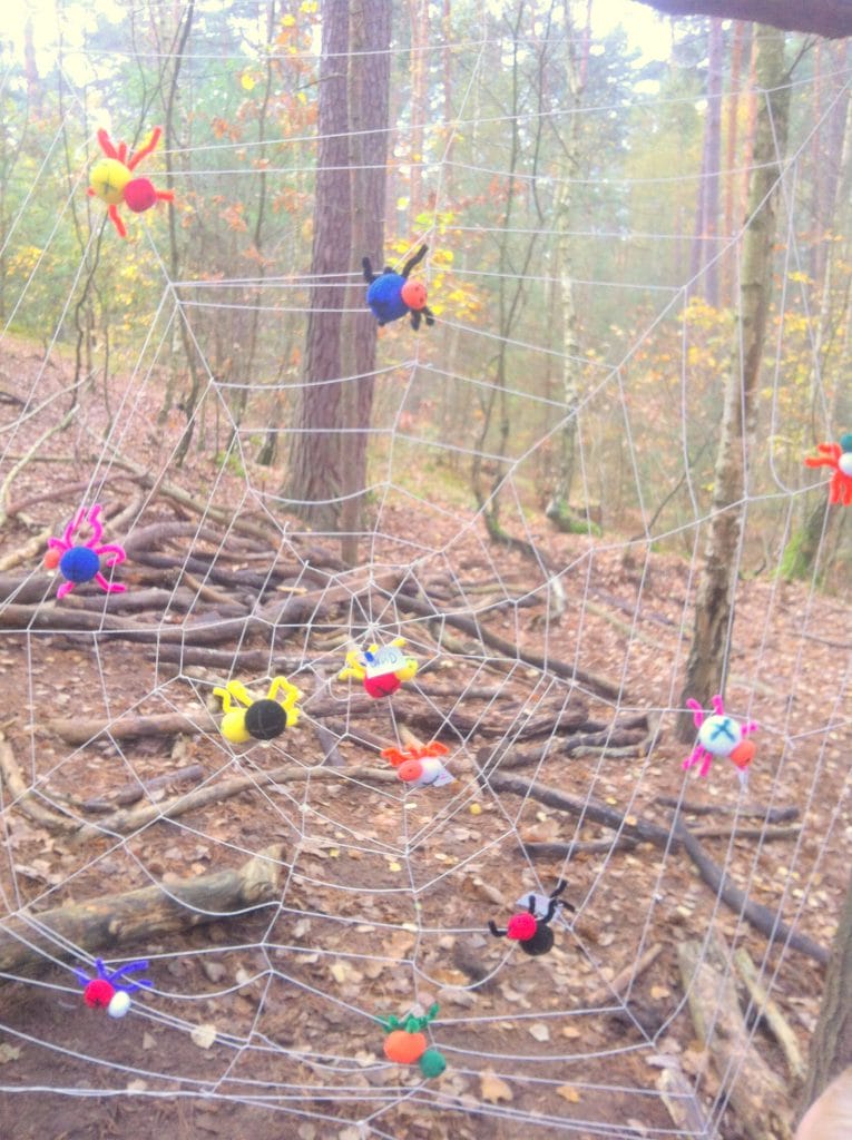 An Stelle der sonst so liebenswerten Kindern kamen gruselige Hexen, Spinnen, Skelette, Zauberer und Piraten in den Kindergarten! Selbstgebastelte Spinnen und Gruselgespensterchen schmückten ein riesiges Netz zwischen zwei Bäumen und verwandelten unseren Wald in einen Geisterwald.