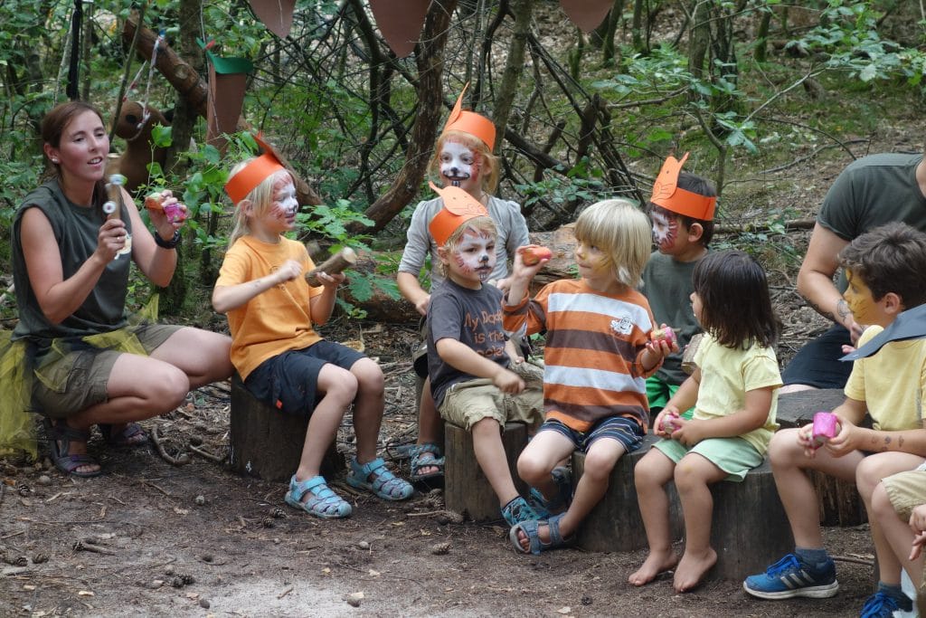 Schon der strahlend blaue Himmel am Morgen des 9.Juli 2017 ließ die Mitglieder des Waldkindergartens Alzenau auf ein stimmungsvolles 10. Waldfest hoffen. Nicht wie die letzten Jahre im strömenden Regen, konnten die Aufbauarbeiten endlich mal wieder voller Vorfreude und Motivation angepackt werden, um ab 12.00 Uhr die ersten interessierten Besucher zu empfangen. Während die Kinder schon hinter der Waldhütte verschwanden, um an einem Workshop teilzunehmen, in dem die Erzieher ihre in einer Seilfortbildung gelernten Klettermöglichkeiten aus kunstvoll zusammengeknoteten Seilen zur Schau stellten, wurden das Kindergartengelände und die liebevolle Dekoration von den Eltern, den Großeltern und allen anderen Besuchern begutachtet und bestaunt. Auch für das leibliche Wohl wurde mit Würstchen im Brötchen, Fladen vom Grill mit köstlichen Dips und eine große Auswahl an leckeren Kuchen und Muffins gesorgt, außerdem konnten von den Waldeltern liebevoll hergestellte Basteleien erstanden werden. Inzwischen nahmen einige jungen Gäste den Bastelstand, an dem Taschen bedruckt und Instrumente aus Holz gefertigt werden konnten in Beschlag, andere wurden am Schminktisch in lustige Tiere, zauberhafte Wesen oder grausame Gestalten verwandelt.
