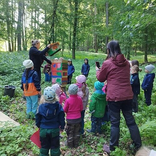 Freitag, 26.5.23 – Heute erwartete die Waldkinder etwas ganz Besonderes – der lang ersehnte Bienenschwarm isteingezogen. Dieser Tag wurde im Kindergarten lange vorbereitet-der bunt angemalte Bienenstock aufgestellt, alle Ebenen besprochen. Die Kinder konnten eine alte…