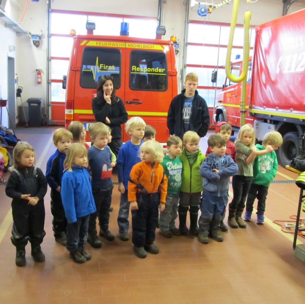 Für die Kinder des Alzenauer Waldkindergartens begann das neue Jahr gleich mit einem aufregenden Ausflug zur Michelbacher Feuerwehr. In beeindruckender Montur empfingen Lukas Strack und Vorstandsmitglied Matthias Wilz die Kinder. Bei der interessanten Führung durch die Feuerwache faszinierte die kleinen Besucher vor allem das Löschgruppenfahrzeug! Für ein Kind wurde es besonders spannend – es durfte die Alarmglocke läuten! Wer weiß, vielleicht findet sich in den nächsten Jahren das ein oder andere Waldkind in der Kinderfeuerwehr wieder…